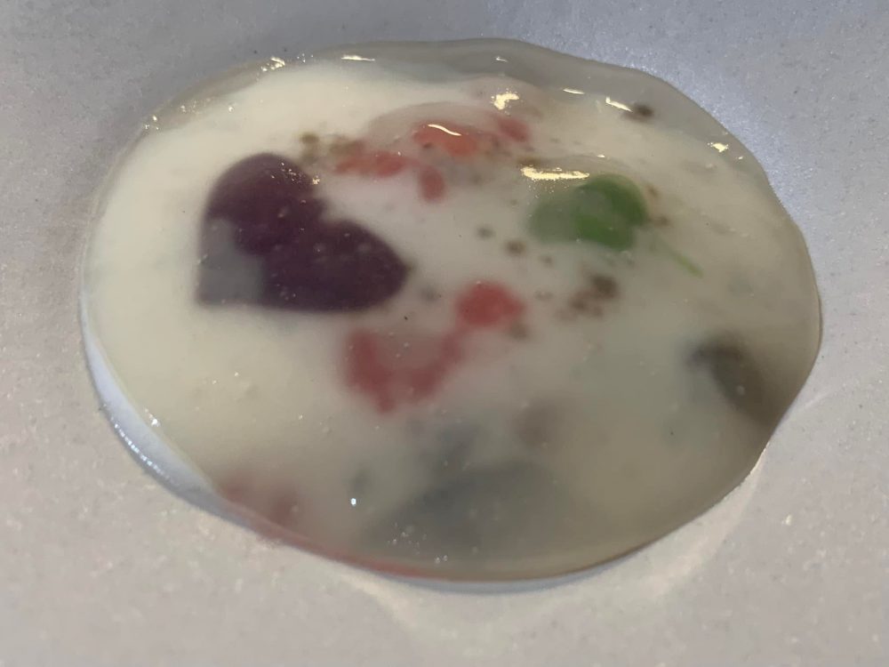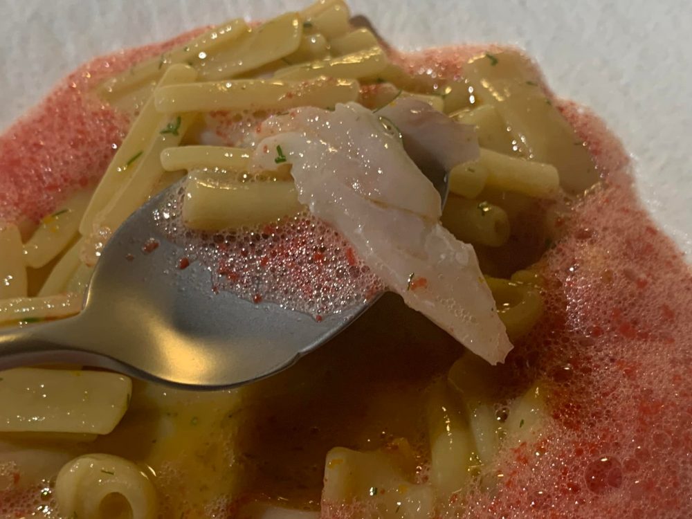 Questo piatti ingrassa i gamberi senza far perdere loro la freschezza iodata, la ‘mnduja si avverte solo alla fine. Un boccone davvero spettacolare e ben eseguito.