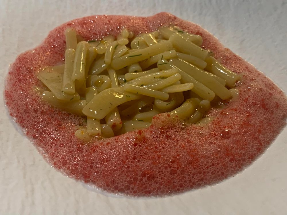 Al Volta del Fuenti, oggi quella scelta si sente in ogni piatto. Non è un fine dining che cerca di stordirti con effetti speciali: è un racconto nudo, fatto di radici e visioni. Una pasta e patate che vive due vite – quella tradizionale, lenta e fumante, e quella contemporanea, verde e sorprendente. Due interpretazioni che dialogano come maestro e allievo, come passato e futuro.