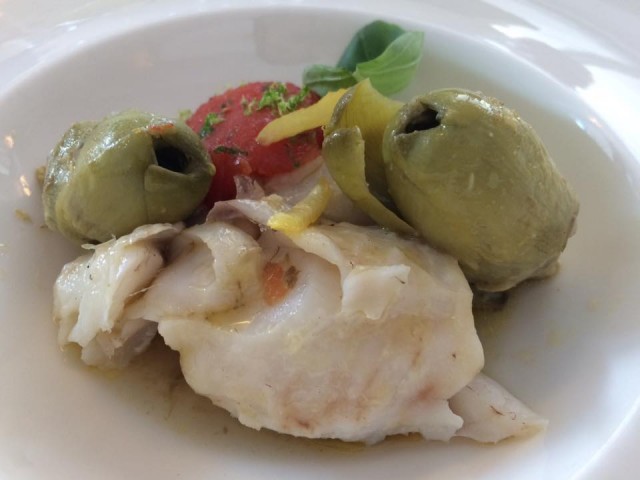 Si apre con il pesce povero per eccellenza, le alici, qui in parmigiana di zucchini. Piatto ricco nel quale i pomodorini freschi e gli zucchini tagliati sottilissimi, solo marinati, sono talmente buoni che forse avrebbe giovato al pesce una cottura più lieve per esaltarne sapore e freschezza, anche senza il grasso della provola.