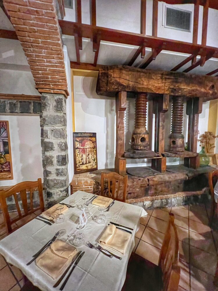 U’ Trappitu, l’antica macina per le olive in pietra e legno, è un bar-ristorante come quelli di una volta, con il locale per il caffè e la birra affacciato sulla strada, gli uomini (solo uomini) intenti a fumare e a parlare del nulla, mentre le donne lavorano a casa e nei campi, come nella migliore tradizione araba.