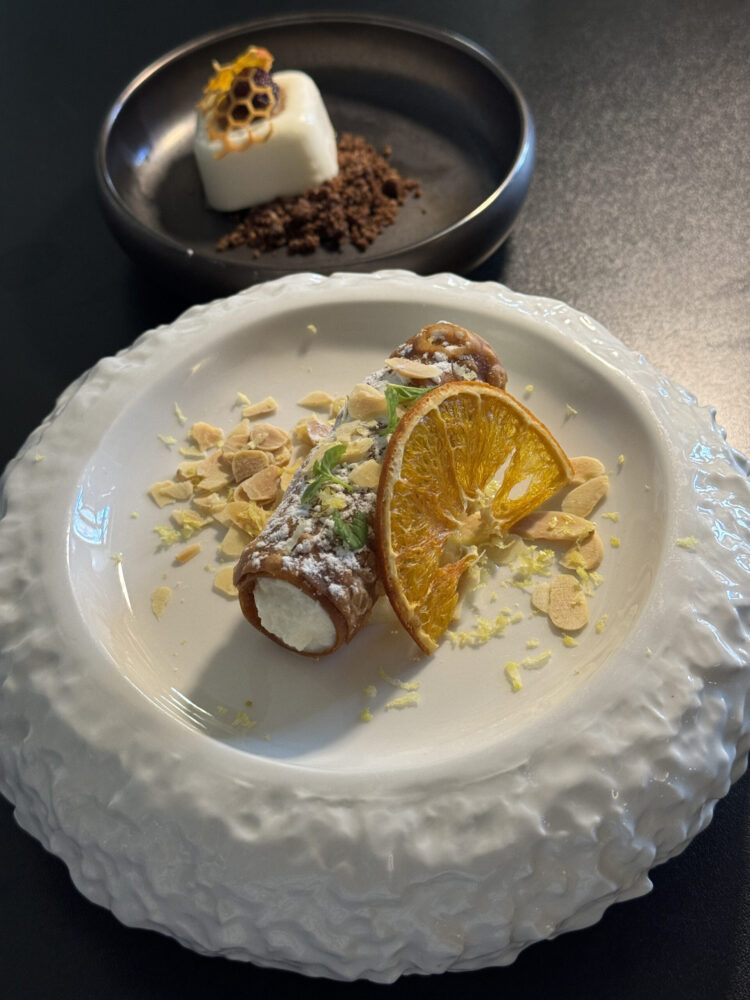 Rocco Trattoria Moderna – Cannolo di pasta fillo con mousse di crema alla ricotta e agrumi – senza lattosio