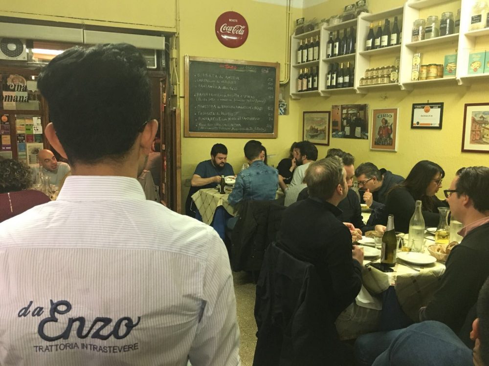 È stata la Famiglia Di Felice a rilevare l’attività della trattoria negli anni Ottanta, alla morte di Enzo, il famoso proprietario e oste. A quell’epoca, la zia di Maria Chiara, che oggi gestisce il locale insieme ai fratelli, lavorava in cucina; poi sono subentrati anche i genitori. La gestione familiare caratterizza questo luogo almeno dal 1952, quando già a via dei Vascellari 29 esisteva già una tipica osteria romana.