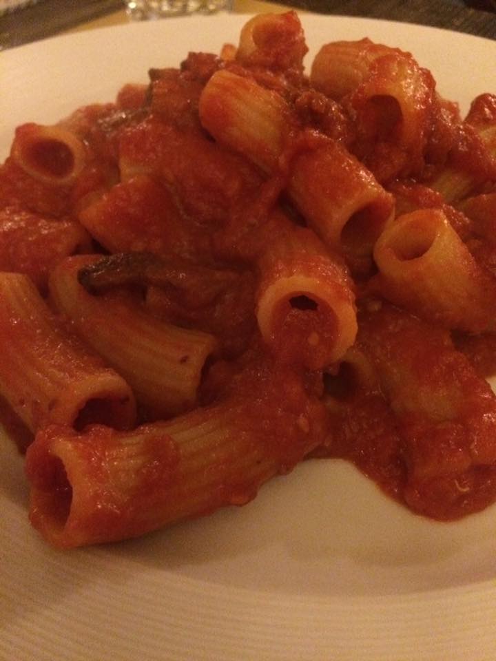 Alla carta – che ha un’impostazione «didattica» con diverse spiegazioni e spigolature – si possono scegliere bruschette, fritti o crostini, per cominciare. Ma anche qualche piatto alternativo, come la catalana di baccalà con cous cous; e qualche primo piatto, come ad esempio i rigatoni all’amatriciana.