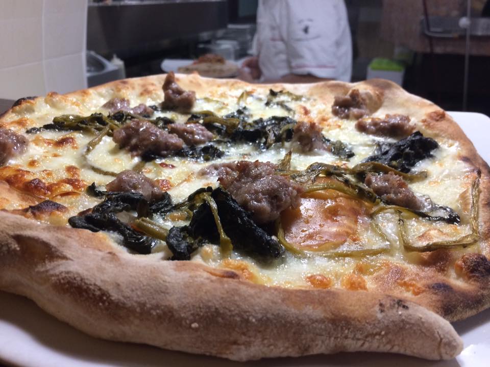 Sulla pizza, invece, si ha davvero solo l’imbarazzo della scelta. Alle classiche (circa una ventina) che vanno dalla margherita alla diavola, dalla capricciosa alla quattro formaggi, e così via, si aggiungono ben trenta varianti, suddivise tra “bianche d’autore” tra le quali l’ottima ‘Rocky’, con friarielli napoletani e salsiccia o la pizza ‘Sabrina’, con mozzarella, provola, scalogno, stracchino e speck e “pizze fantasia” che vanno dall’amatriciana alla ‘contadina’, con mozzarella di bufala, peperoni e olive.