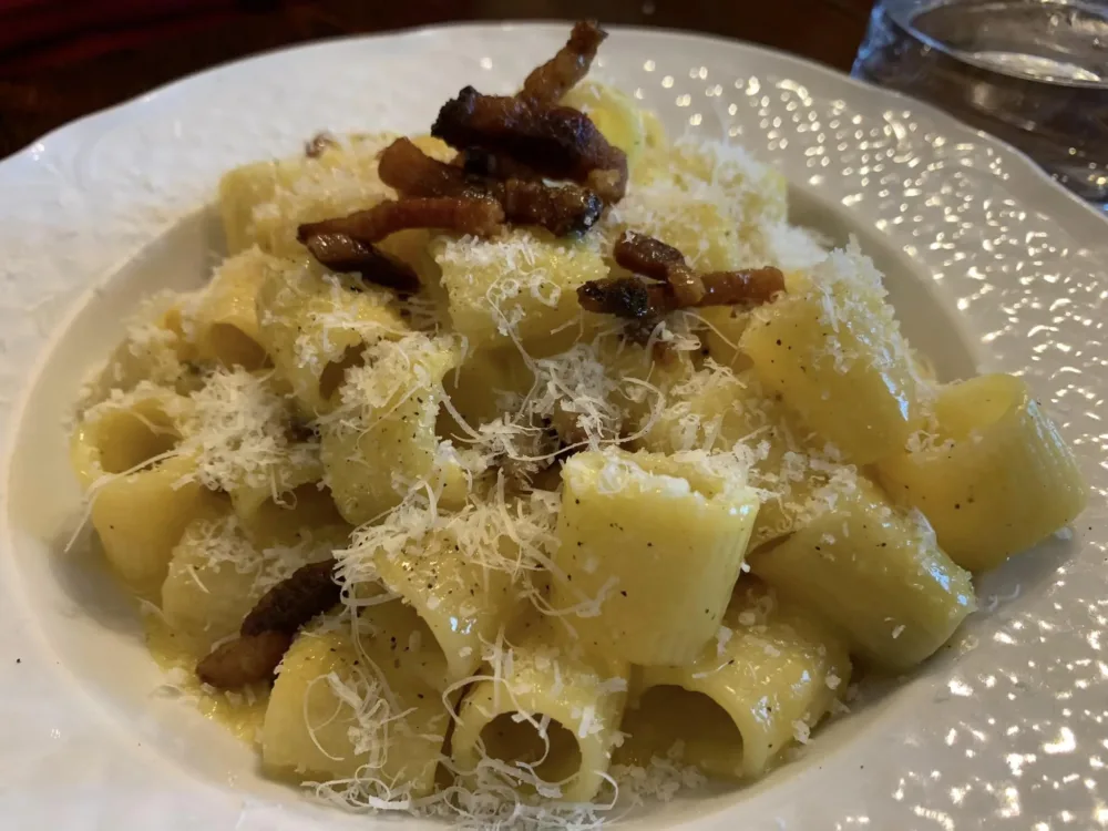 Una cucina nel complesso ben eseguita, e i classici non deludono. Dal carciofo alla giudia alla carbonara (14 euro), dalla cacio e pepe alla cicoria ripassata: chi cerca l’abbecedario della romanità non resta deluso. La trippa la si trova fritta, come antipasto oppure alla romana o, ancora, con i fagioli e pecorino (14 euro): ricetta corposa e appagante.