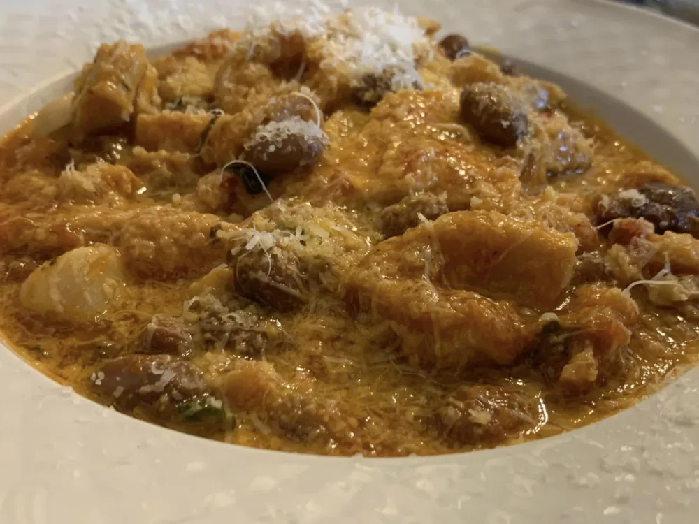 Il servizio, pronto e veloce (ma non si va di fretta) si alterna agli affacci ai tavoli della padrona di casa e nel complesso l’atmosfera è confortevole. Qualche sgrammaticatura: le posate non si cambiano tra una portata e l’altra e si poggiano direttamente sul tavolo. La cosa non va granché bene in una trattoriola alla buona, non è ammessa in un’osteria con un costo medio di 45 euro.