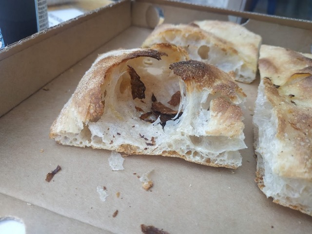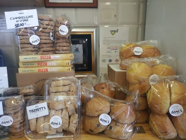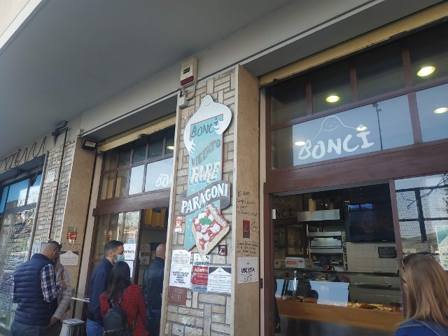 In pizzeria l’ingresso è contingentato: sono presenti due porte per l’entrata e l’uscita dei clienti e il servizio al bancone è molto veloce e cordiale. La pizza può essere consumata velocemente all’esterno del locale, grazie alla presenza di alcune postazioni ben distanziate. Qui sono in vendita anche alcuni tipi di brioches da colazione: eccellenti quelle farcite con crema pasticcera cotta (4€, 300 gr), oltre ad alcuni biscotti tradizionali, come i tozzetti e le ciambelline al vino.