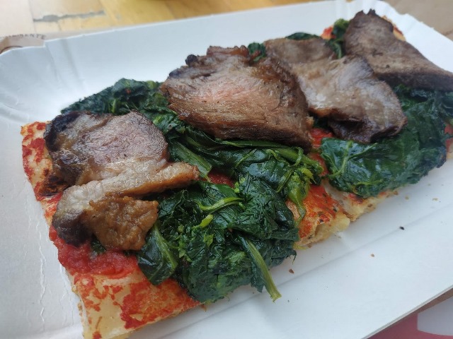 Pizzarium – pizza con tagliata di nero calabrese e broccoletti ripassati
