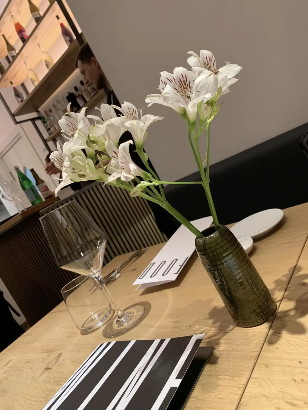 Raccolgo qualche informazione in rete sullo chef, memorizzo nelle foto pubblicate su Instagram i fiori freschi al tavolo e leggo con attenzione il menu online (sito fatto molto bene, con descrizione dei piatti e prezzi, vivaddio).