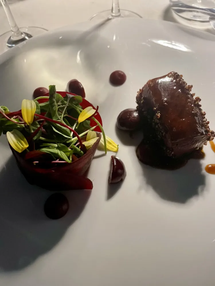 Anatra con ciliegie e rapa rossa agrodolce