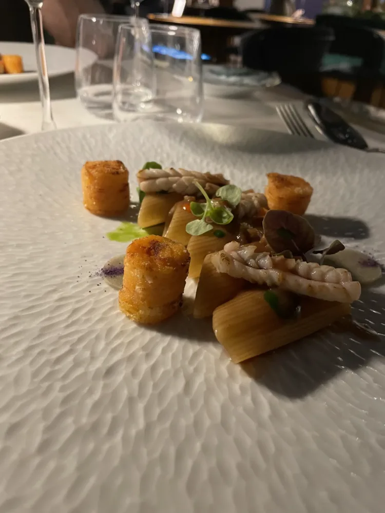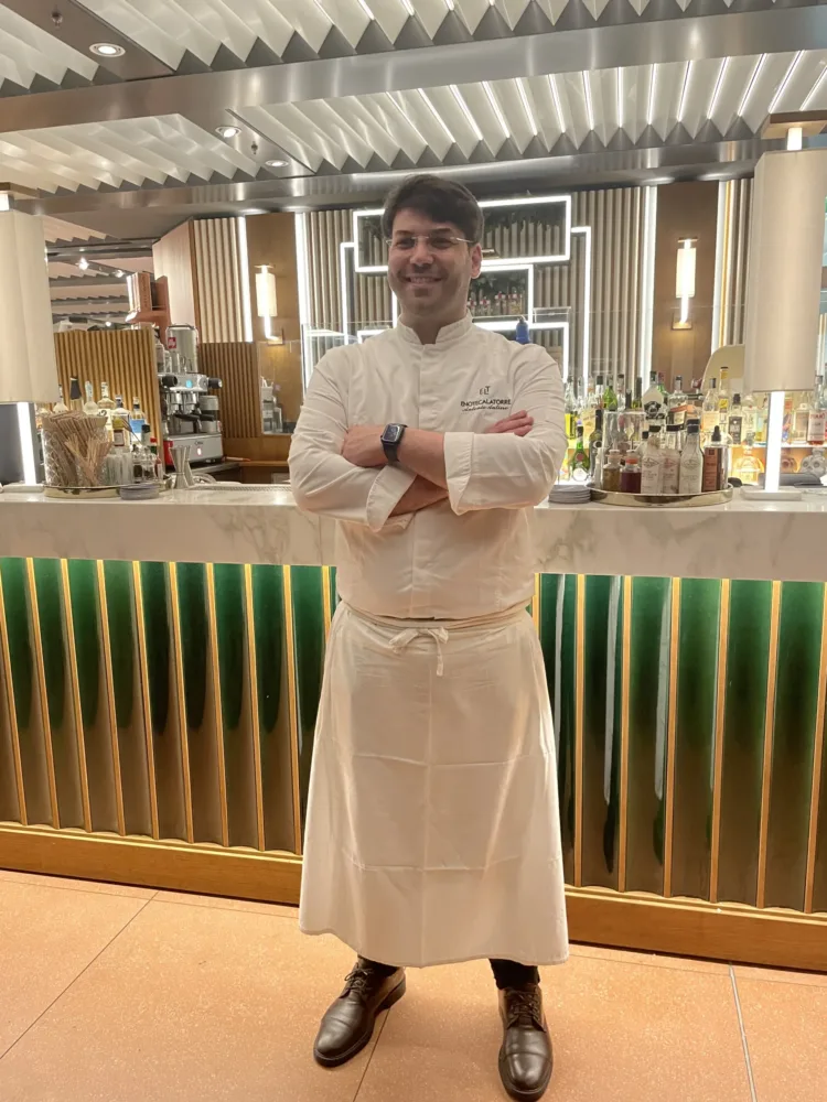 Di origine campana, Antonio Autiero è un giovane talentuoso, si è diplomato alla scuola alberghiera di Castellammare dove il suo mentore è stato Enrico Cosentino l’inventore degli scialatielli e dopo qualche anno di esperienza in alcuni dei più noti ristoranti della Costiera Amalfitana è approdato presso Enoteca La Torre Villa Laetitia con l’amico Domenico Stile tra i più giovani chef in Italia ad ottenere Due Stelle Michelin. Dal 2022 A. Autiero gestisce in solitaria il ristorante della Rinascente. Mentre all’ora di pranzo si possono gustare piatti più semplici, spuntini veloci e cocktails all’ora dell’aperitivo, con proposte nazionali e internazionali e una serie di signature ideati dai bartender del gruppo, la sera questo posto si trasforma in un vero e proprio fine dining. Lo spazio è accogliente e curato con un team che si destreggia tra i tavoli con discrezione con carrelli gastronomici dedicati alle tartare, di salmone e manzo, con salse e abbinamenti speciali. In una sera di luglio ho gustato dei Bao al vapore con palamita e maionese al tosazu; dei tacos di verdure, caviale di tartufo e creme fraiche, bon bon di baccalà e polvere di tandori, mini caprese accompagnati da Paloma analcolico.