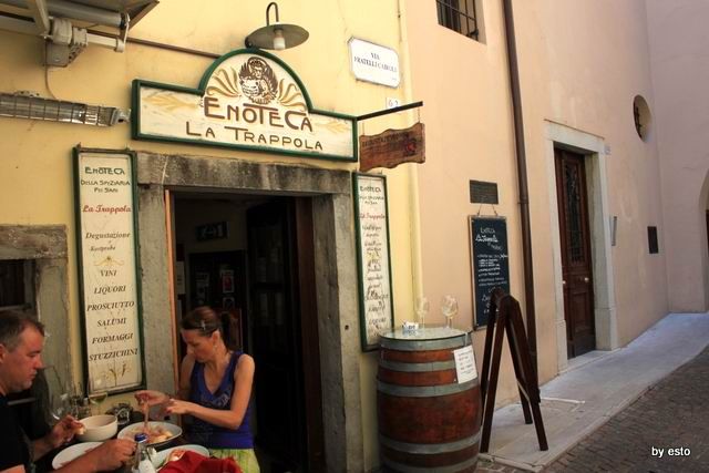 Questa piccola enoteca prosciutteria è la più nota di questo bel paese fatto tutto in salita con la candida facciata della chiesa madre che domina la piazza grande.