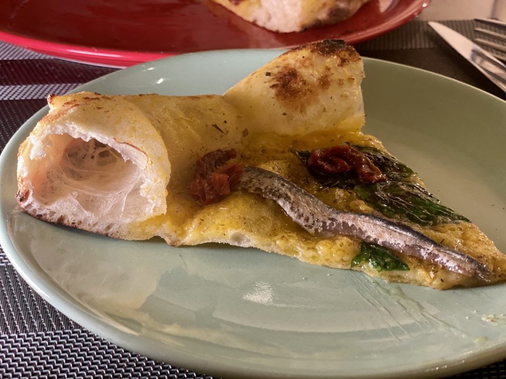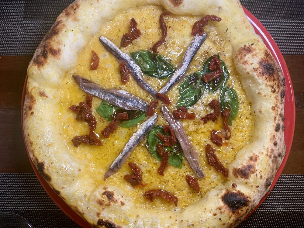 Il menù ha una proposta gastronomica ricca, che vede anche piatti della cucina tradizionale. Ma il focus è la pizza, che punta su gusti classici, come la Margherita preparata con il fior di latte, e su una lunga scelta di pizze speciali, di fantasia. Ben equilibrata la Finta Marinara, con pomodorini gialli, pomodoro secco, alici di Cetara, polvere di capperi e una manciata di origano, che regala una piacevole nota di freschezza.