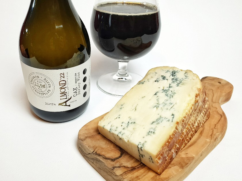 Altra chicca di Paolo Amato è questo formaggio caratterizzato dalle note affumicate, che accompagnano in maniera elegante quelle di frutta secca ed erbacee evidenti al gusto. Il pezzo di formaggio si fonde all’assaggio, lasciando una patina all’interno della bocca, a testimonianza dell’importante grassezza. In abbinamento ho scelto la Oak Essenze, barley wine di Almond22. La birra è decisamente complessa, con note di caramello, frutta secca e tutte quelle che appartengono al mondo dei malti scuri, che esaltano l’affumicatura del formaggio, abbracciandola durante tutto l’assaggio. L’elevato grado alcolico contribuisce alla pulizia del palato dalla grassezza.