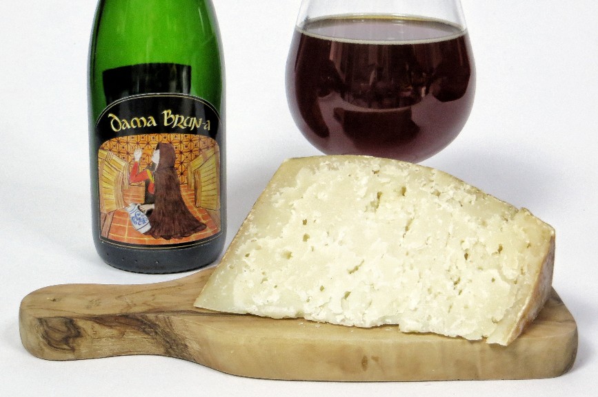 Uno dei fiori all’occhiello del Caseificio Aurora, primo classificato nel 2018 nel concorso Crudi d’Italia nella categoria dei caprini di lunga stagionatura. Il latte di capra utilizzato è quello dei Monti Lattari, territorio in cui è presente anche la grotta naturale in cui viene stagionato 12 mesi, presso l’agriturismo La Grotta di Corbara. Formaggio a pasta dura, si presenta leggermente friabile, pur mantenendo una buona umidità, grazie alla grassezza presente. Il gusto è decisamente complesso, con sentori di nocciola, fieno e spezie. Molto elegante la sapidità presente. La birra scelta in abbinamento è la Dama Brun-a, oud bruin di Loverbeer. Questa ha un ingresso fruttato, con sentori di ciliegie e uva passita, che bilanciano la sapidità del formaggio. L’acidità, morbida e avvolgente, aiuta la pulizia del palato insieme al buon contenuto di alcool.
