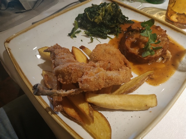 Ottima anche la focaccina di Milana lievitata 48 ore con fior di latte a crudo dell’Azienda Ammano, stracciatella di bufala, puntarelle, alici di Anzio e cipolla rossa marinata (10€) e, nel “Quinto Quarto”, veramente sfiziose le animelle di vitella come un saltimbocca alla romana (13€), con la salvia fritta come elemento decorativo.