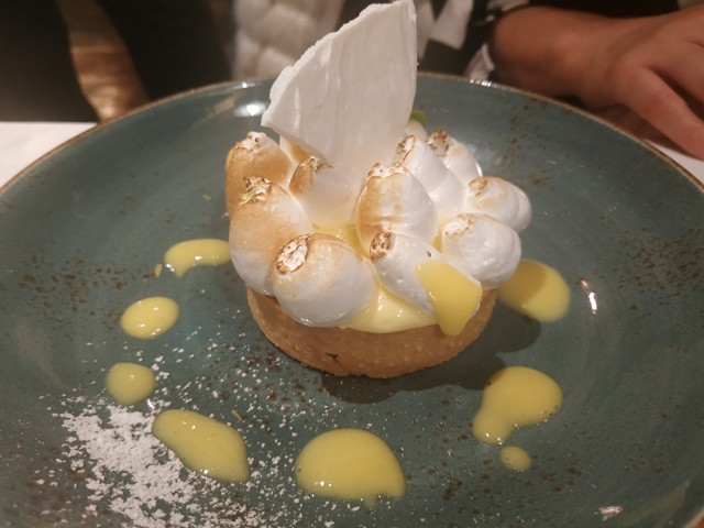 I dessert non deludono le aspettative: delicata la frolla bretone salata, lemon curd e meringa italiana bruciata (9€).