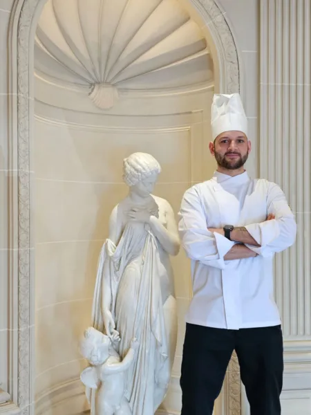 Davide Zanonato del ristorante Il Lago a Ginevra, partecipa a Primo Piatto dei Campi 2023, iniziativa siglata 50 Top Italy e Pastificio dei Campi, con Spaghettone all’essenza di melanzana.