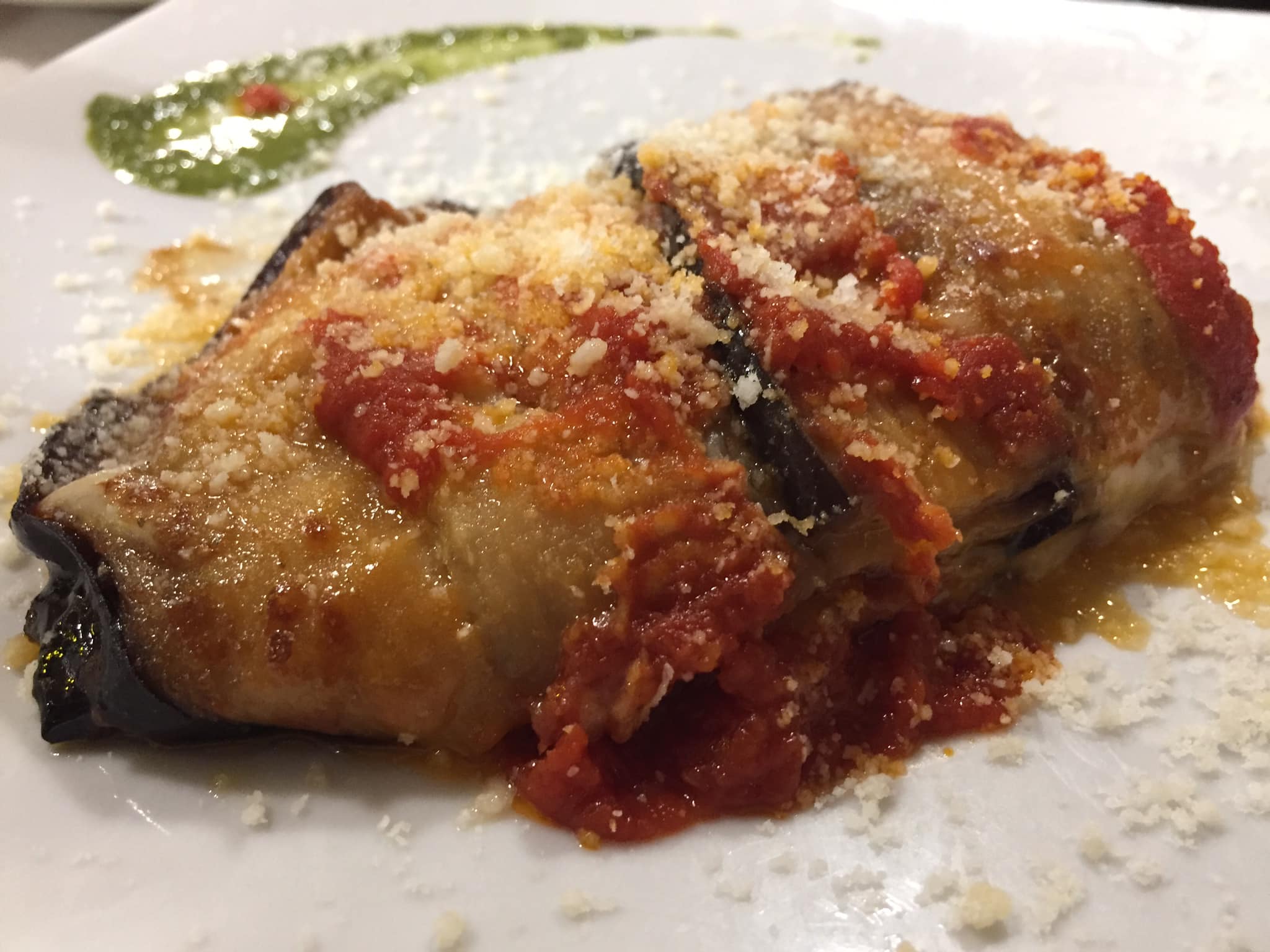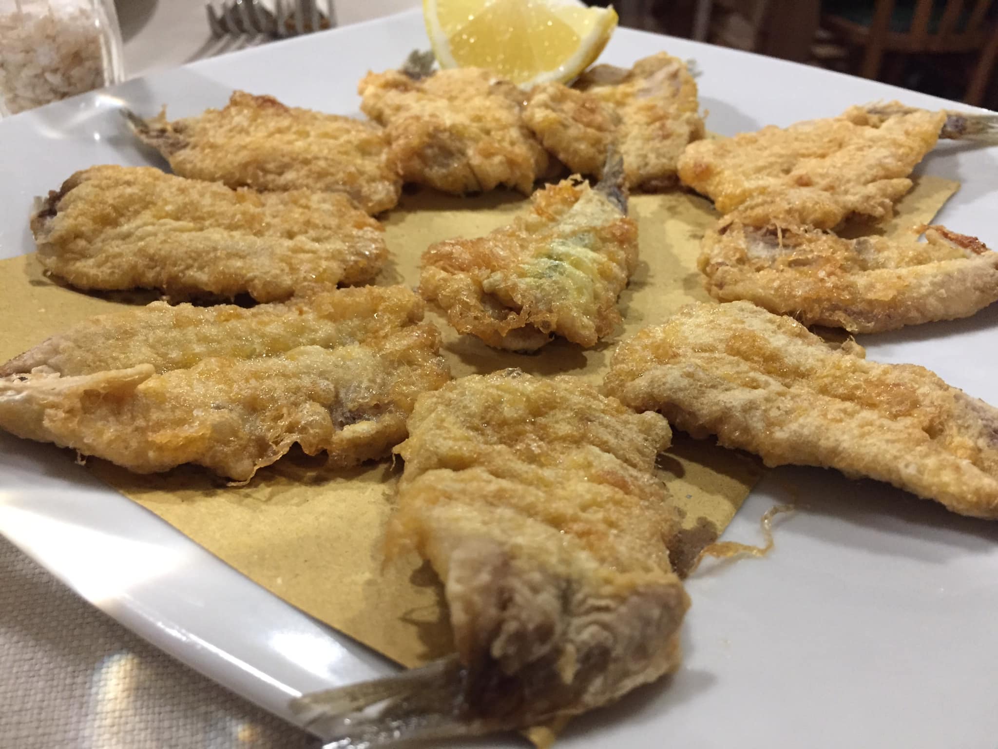 A questo giro, menu marinaro: burro e alici del Cantabrico; alicette fritte, con una buona doratura asciutta e leggera. La parmigiana non c’entra nulla col mare ma, quando c’è, è sempre una irrinunciabile golosità.