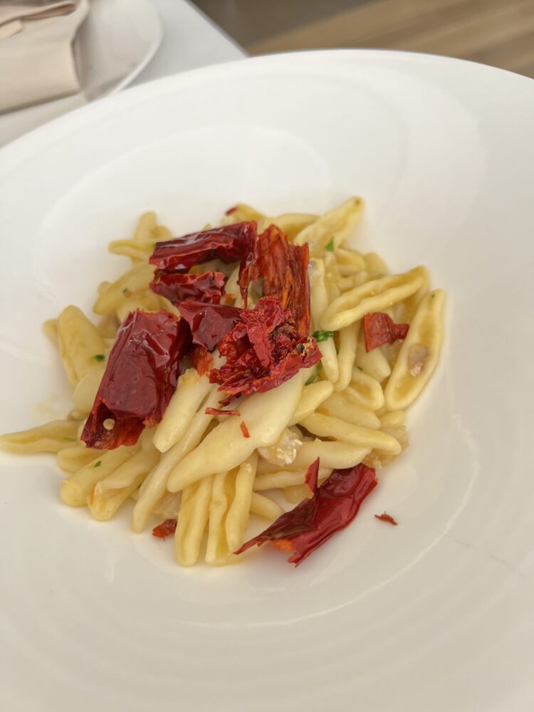 Cavatelli con baccalà, datterino e cruschi – Tenuta Lagala