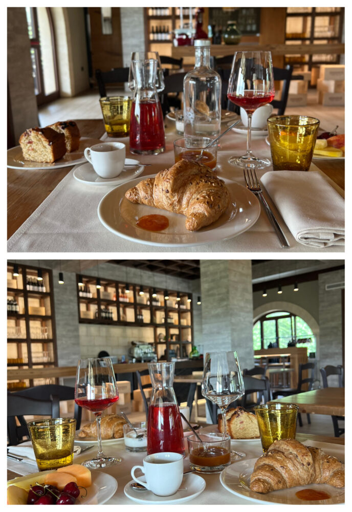 L’indomani non ho fatto attendere troppo la colazione, che rappresenta uno tra i motivi della mia riconferma anno dopo anno, la loro proposta di succo d’uva d’aglianico, le torte fatte in casa da Angelica, yogurt co frutta fresca e i cornetti ai cereali a lenta lievitazione con lievito madre, sono una coccola e un’autentica iniezione di felicità.