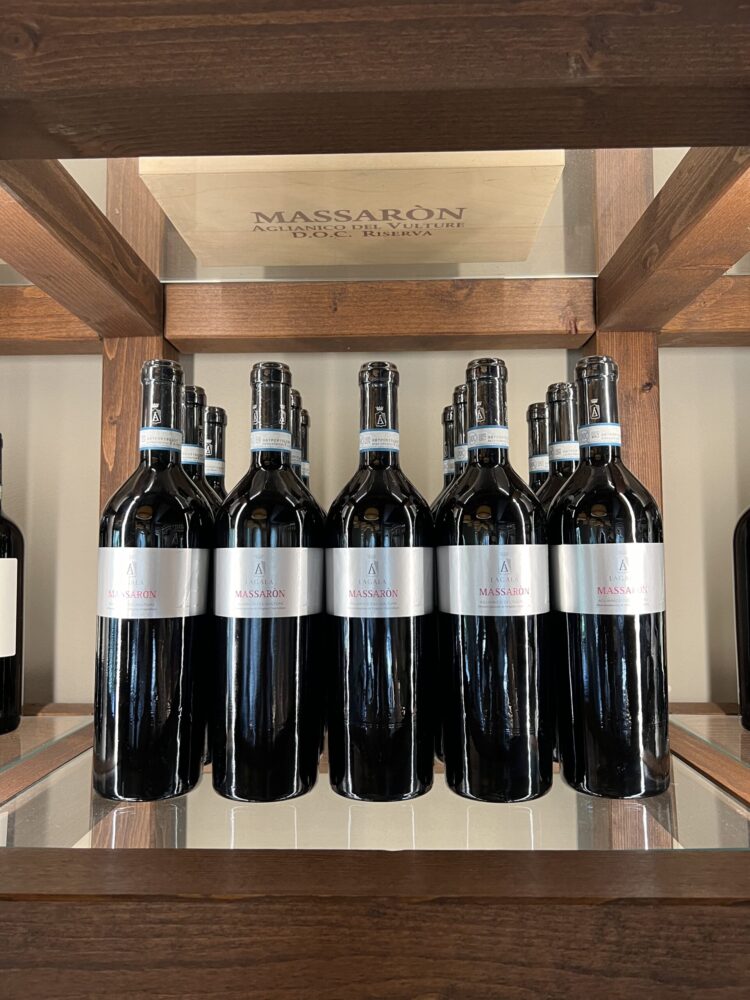 “Massaròn” è il rosso di punta, una riserva prodotta con uve Aglianico del Vulture e che viene lasciato in botti di rovere francese per 24 mesi e vanta una gradazione alcolica di 15 gradi. La sua capacità di conservarsi nel tempo lo rende un vino piacevole, adatto a grandi preparazioni di carne e lunghe cotture.