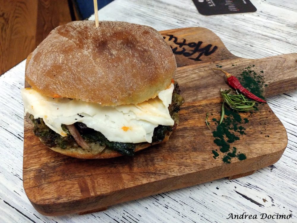 Ci sono poi i panini: lo “Schietto” con hamburger di Marchigiana, insalata, pomodoro, ketchup di pomodoro giallo, pancetta arrotolata, caciotta, maionese e cipolla croccante; il “Contadino” con hamburger di maiale, scarola, riduzione di vino cotto, caciotta piccante e cipolla croccante; il “Campanello di vitellone” con tagliata di vitellone marchigiano IGP, patate al forno, fonduta di formaggio, cipolla di Alife Presidio Slow Food caramellata e pomodoro confit; il “Porchetta” con porchetta, friarielli piccanti e provola; il “Zia Rosetta” con polpetta al ragù di San Marzano e mozzarella fumé; il “Veg” con burger vegetale, fonduta di formaggio e spaghetti di patate fritte.