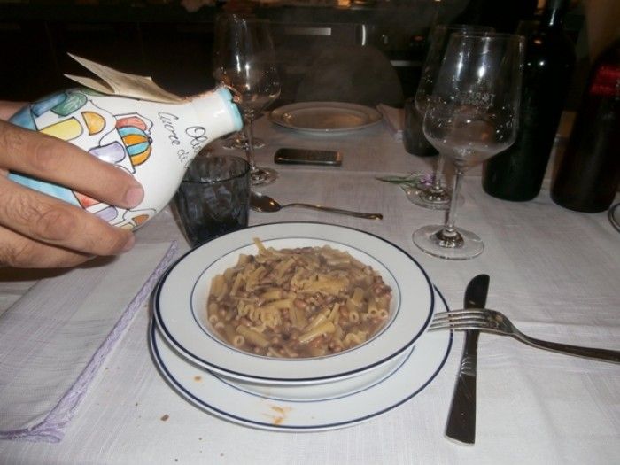 Abbiamo infatti mangiato i fagioli all’occhio, marroni molto piccoli gustossimi con la pasta, il baccalà su letto di ceci neri, il fagiolo biondo del Fortore e lo zolfino con salsiccia rossa di Castelpoto. Il tutto preparato in maniera magistrale.