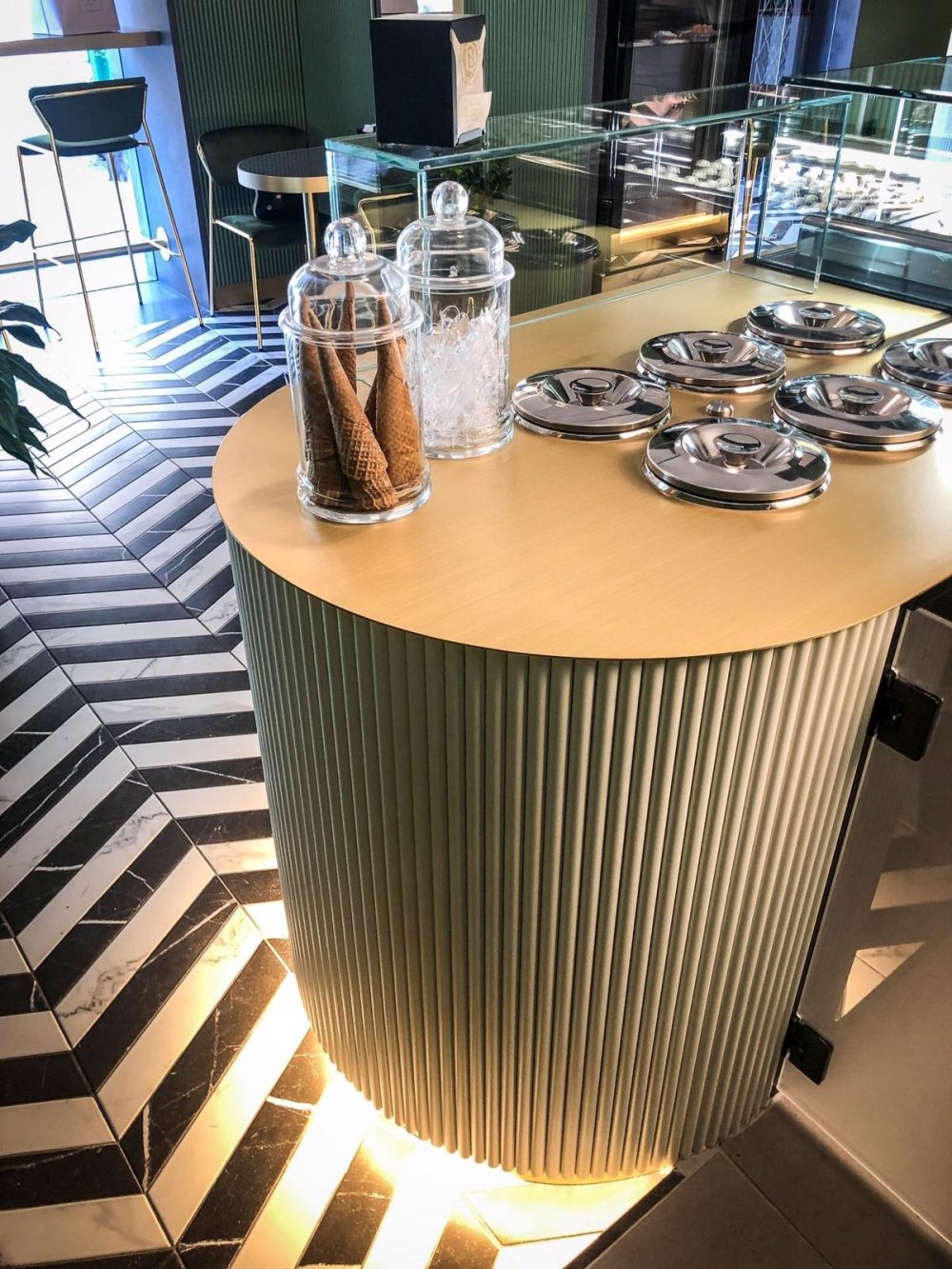 Un restyling che, però, sa di tradizione. Gli interni sono verdi, come la carta con cui Salvatore Cutolo, il figlio Peppe e il nipote Salvatore, hanno da sempre incartato i loro dolci.