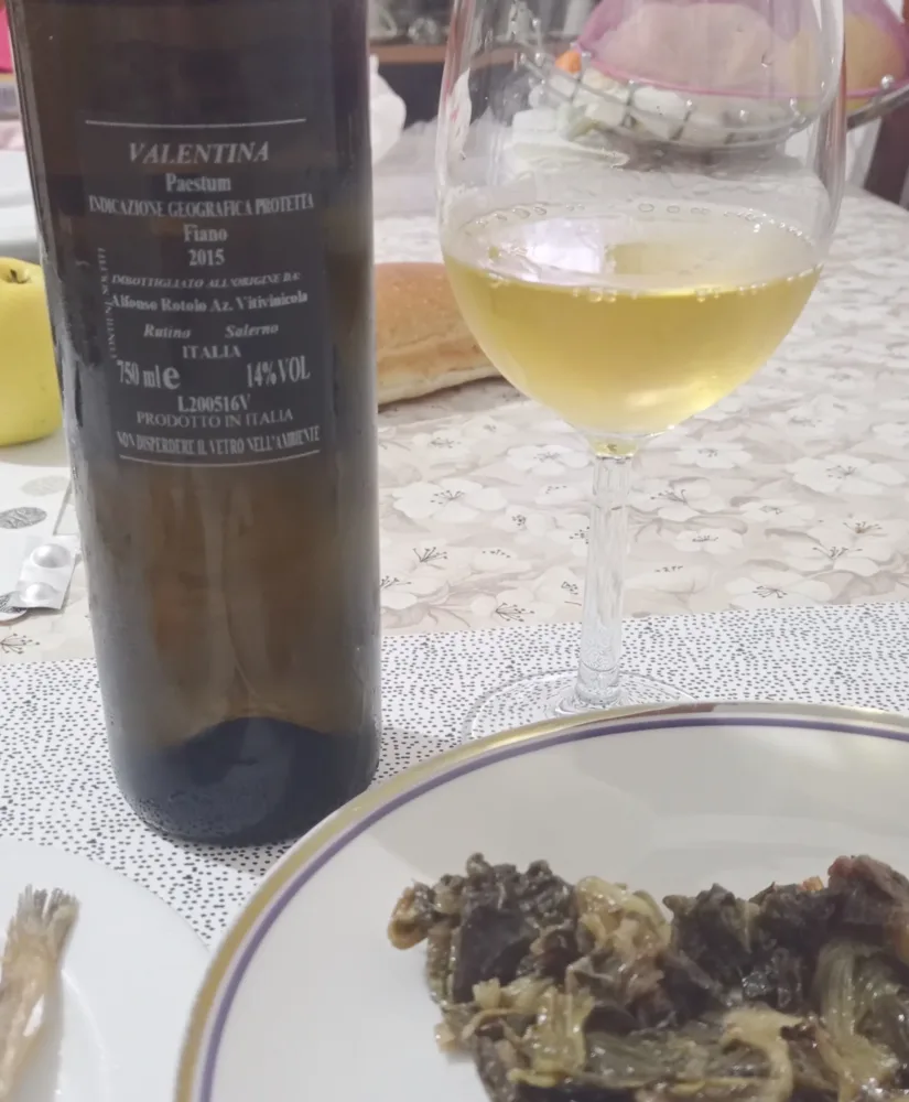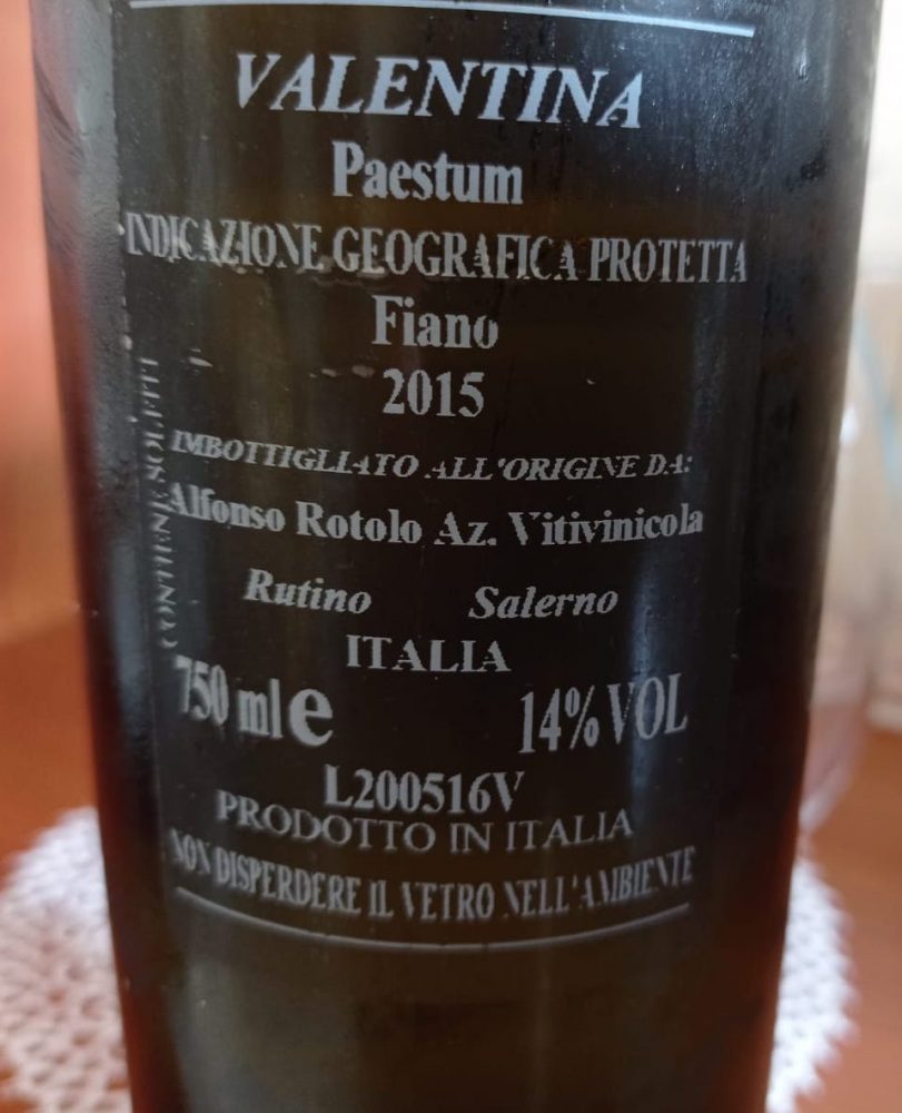 La vigilia come si sa è rigorosamente “di magro” e quindi i vini bianchi assurgono al ruolo di assoluti protagonisti sugli antipasti, sui piatti di pasta col pesce, anche nella variante fritta, sul baccalà, sulla verdura scottata, ecc. Tra le tante bottiglie stappate ecco qui una cilentana datata che mi ha davvero entusiasmato: Valentina Fiano Paestum Igp 2015 dell’azienda Alfonso Rotolo di Rutino. Millesimo che avevo già assaggiato due volte in precedenza: nel 2016 e nel 2021. Vediamo allora come l’ho trovata dopo otto anni di invecchiamento.