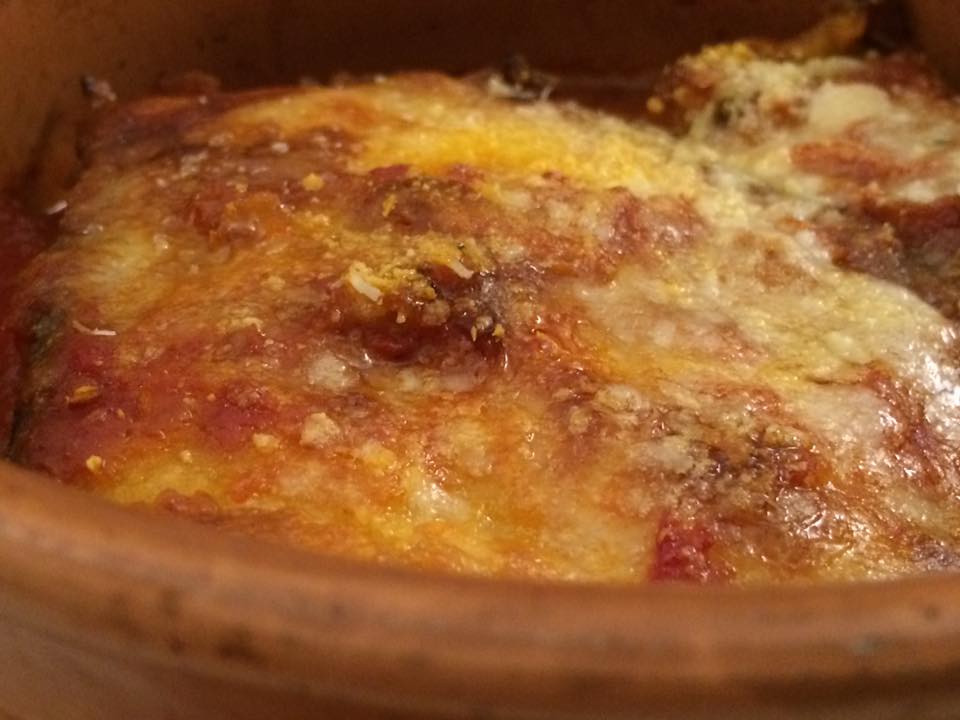 Anche la parmigiana di melanzane è ben eseguita, resa appetitosa dalla ripassata in forno nel tegamino di coccio.