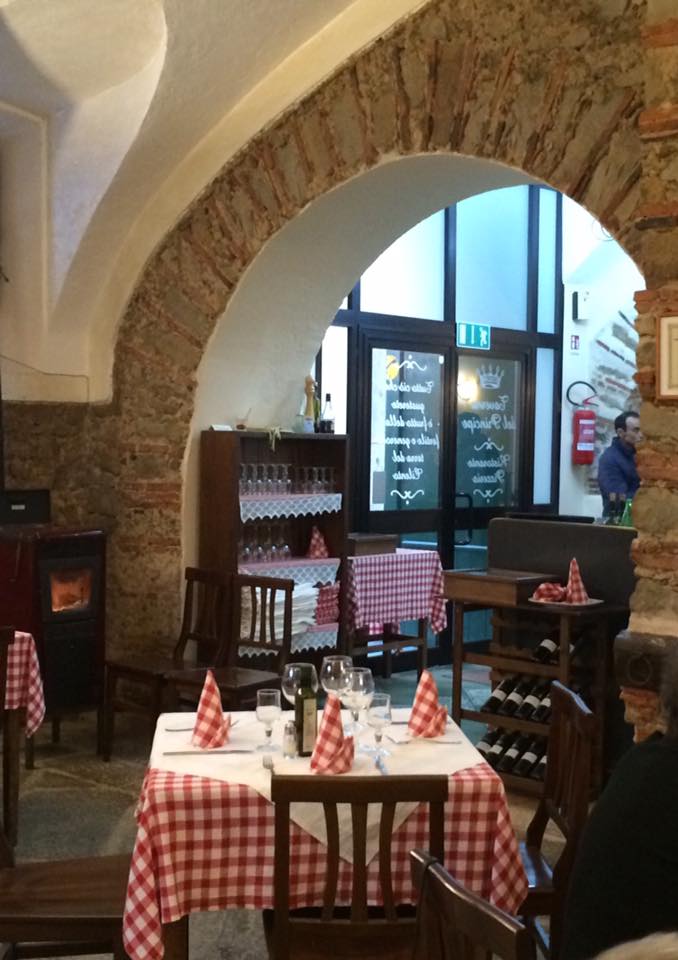 Le sale del locale erano una volta le stalle del palazzo, e la rispettosa ristrutturazione mostra oggi in bella vista le mangiatoie in pietra e legno. L’arredo è molto semplice, con il tipico tovagliato a quadretti bianchi e rossi, a ricordare le vecchie trattorie.