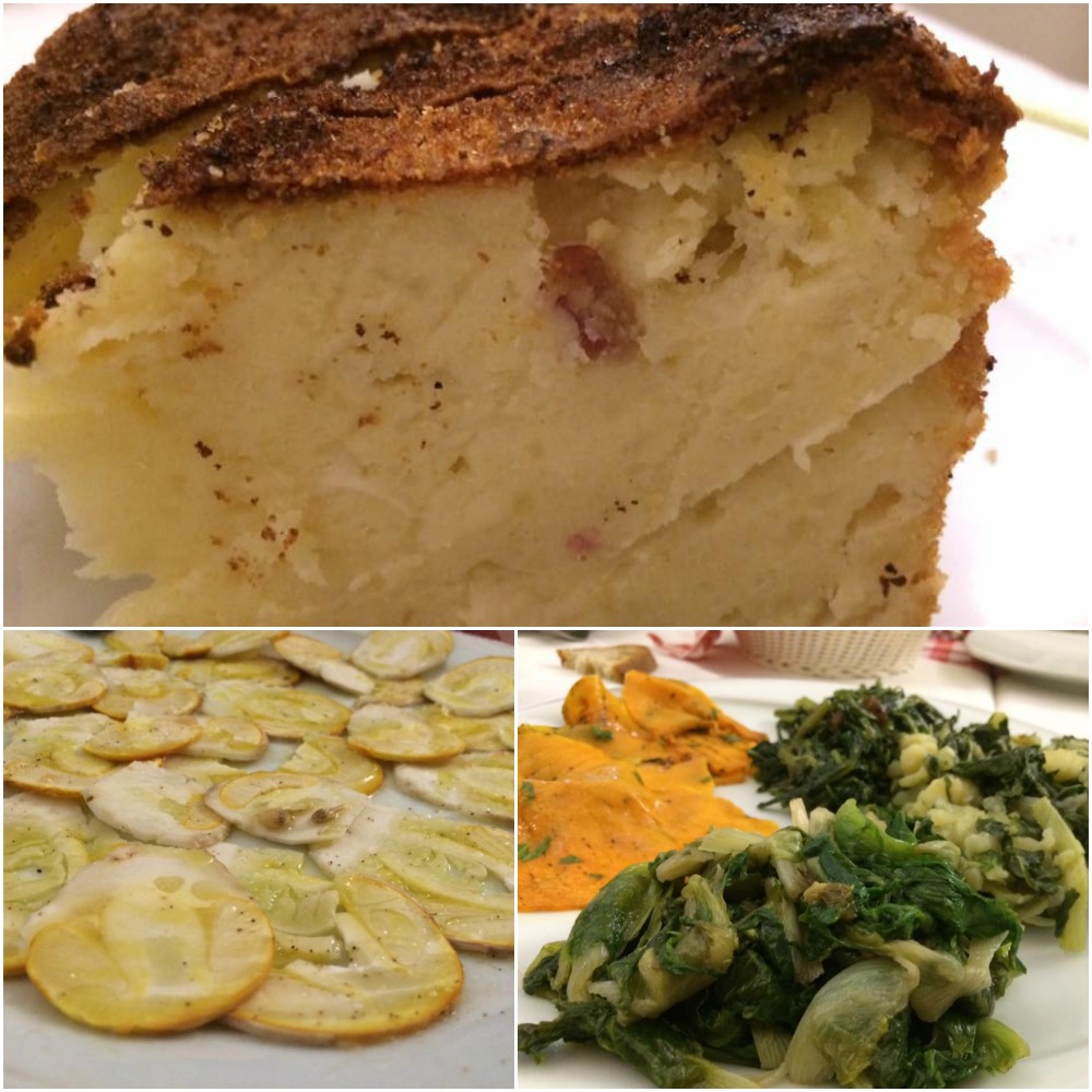 Si comincia, volendo, con un ricco antipasto di verdure (un vero paradiso per i vegetariani) a partire dalle melanzane con mozzarella e pomodoro, dalla minestra di biete e patate alle scarole ripassate in padella, fino alla zucca arrostita. Stuzzicanti gli ovoli crudi all’insalata e goloso il gattò di patate con la crosticina bella ‘arruscata’.