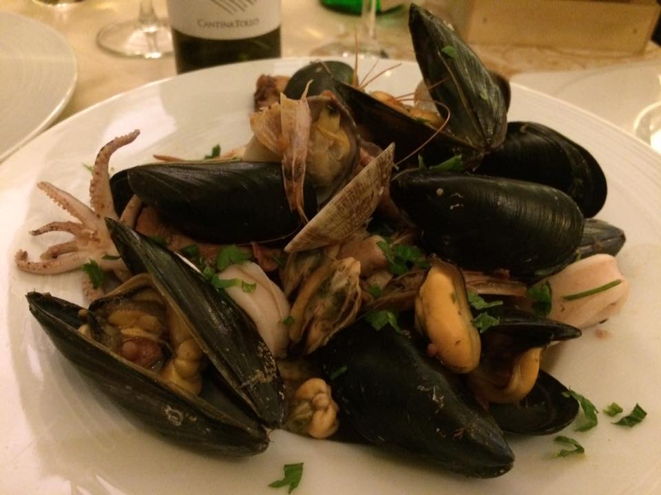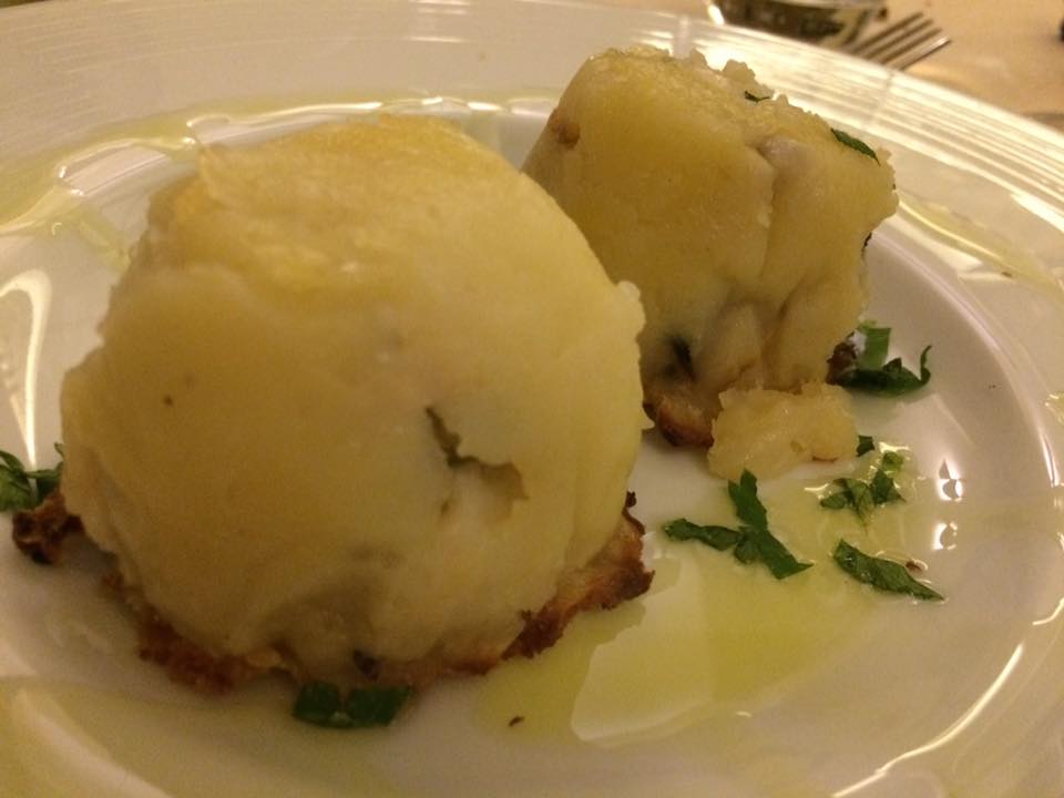 Tra gli antipasti, troviamo un fuori carta molto gradito, la zuppa di cozze napoletana, con il polpo, il pan biscotto bagnato col suo sugo e tanto peperoncino. Saporita e verace, di grande soddisfazione. Più delicato ma altrettanto riuscito, il tortino di patate e cozze.