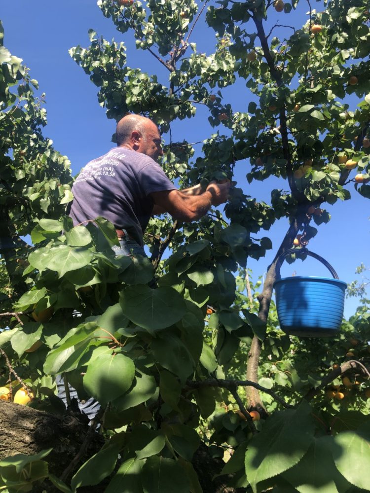 Lui è Gaetano Romano e produce albicocche da antiche varietà a Somma Vesuviana. Telefonategli e prendete un appuntamento. Andate con lui nel frutteto e come ho fatto io, staccate dall’albero una albicocca pellecchiella matura e mangiatela, tranquilli non c’è roba chimica sopra, qui tutto è naturale, qui tutto è buono. Ma affrettatevi, che il tempo delle albicocche è quasi scaduto, e se finiscono non vi resta che comprare gli squisiti succhi di frutta e le confetture di Gaetano. E avrete tutto l’anno con Voi i profumi e i sapori di questa terra così generosa.
