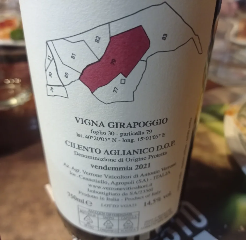 Controetichetta Vigna Girapoggio Aglianico Cilento Dop 2021 Verrone