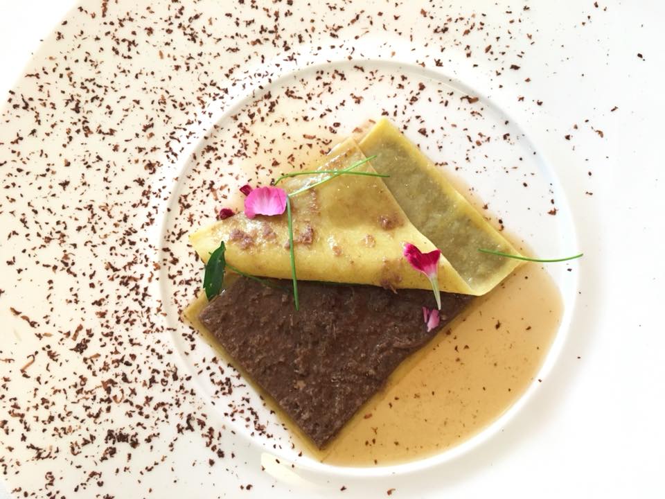 Anche le paste fresche sono presentate in un incredibile equilibrio che serve ad esaltare in un caso la burrata, nell’altra il ragù di cinghiale.