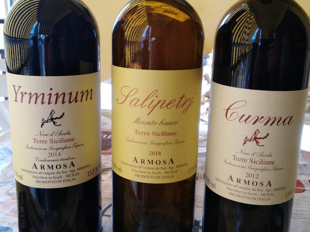 Sempre più viticoltori negli ultimi anni si sono convertiti ad una produzione di “vini naturali”. Anche Michele Moelgg, socio FIVI nonché chimico ed enologo trentino trapiantato ormai da venti anni a Scicli in Sicilia in provincia di Ragusa dove conduce con successo la sua minuscola azienda Armosa, si dedica alla produzione di simili vini. In questo fortunato lembo di terra, collocato alla fine della Sicilia e della stessa Italia, il vitigno principale è il Nero d’Avola e proprio con questa specie varietale il sig. Moelgg sforna tre eccellenti e pluripremiate etichette, di cui recentemente ho assaggiato le nuove annate.