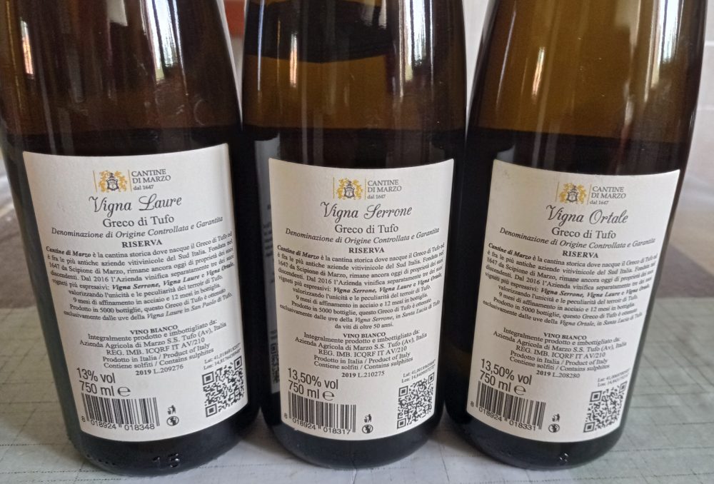 Nella mia recente visita in azienda ho degustato i cru delle tre principali etichette di Greco di Tufo.