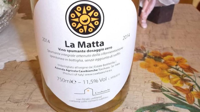 Partiamo subito con La Matta 2017, lo spumante rifermentato in bottiglia dall’azienda Casebianche: un Fiano cilentano fresco, leggere, da bere dal collo della bottiglia.