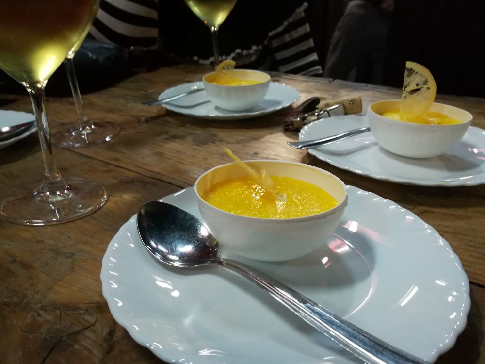 Ricopre dunque il tutto una gelatina a Limone e a decorazione c’è una fettina di Limone semi-candita artigianale che conserva intatti il sapore e l’acidità del Limone fresco. Nel complesso un dessert sorprendente che con la sua bontà abbatte ogni tipo di preconcetto che può sorgere al sol udire di abbinamenti troppo spesso valutati improponibili dalle nostre fallaci convinzioni.