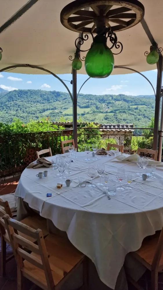 Agriturismo Salae Domini – Tavolo con vista sulle colline con le vigne di proprietà