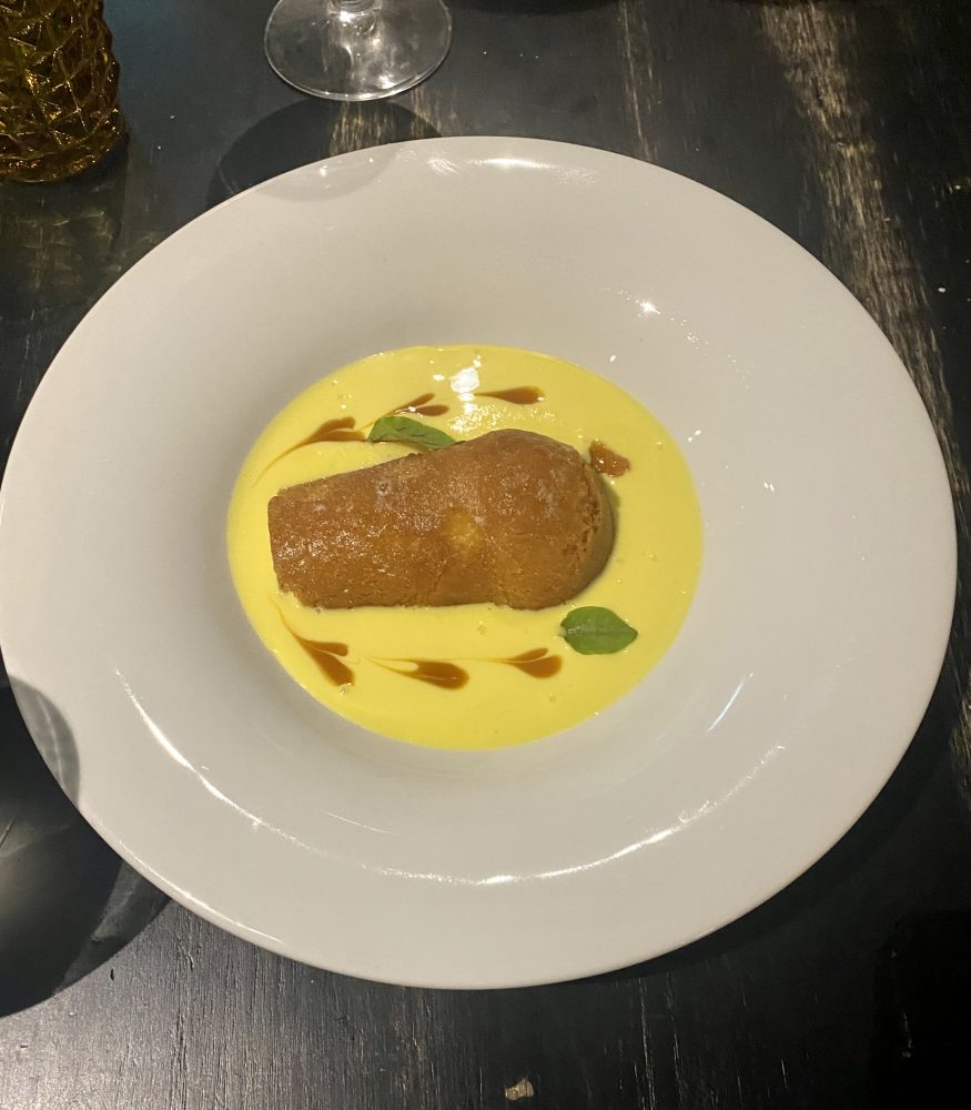 Lo chef ha mano anche nei dessert: vale davvero la pena di assaggiare il Babà saltato al burro salato, servito con zuppa inglese e cioccolato.