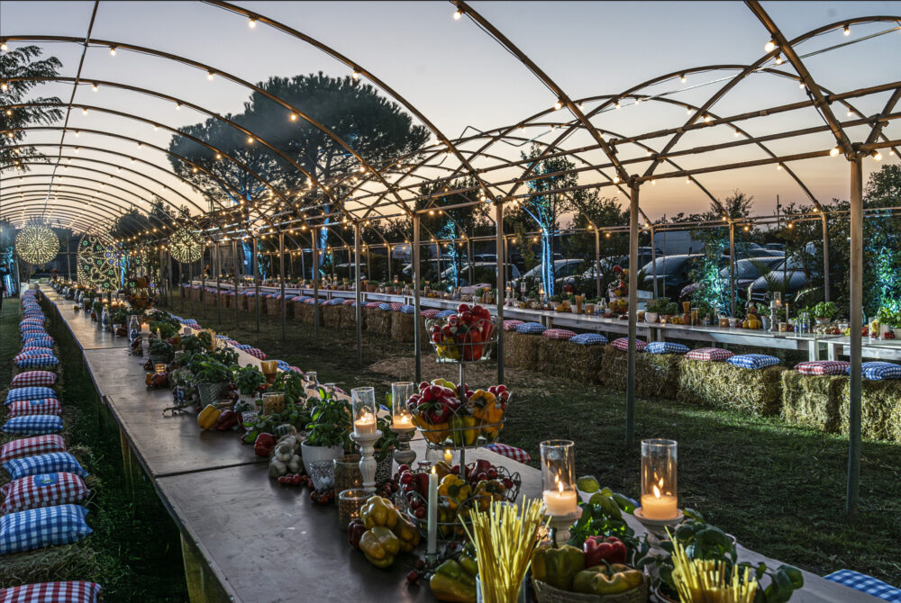 Tutto da assaggiare ai tavoli della Galleria del Gusto illuminata dai tappeti di luci, con atmosfere country-chic grazie a cuscini a quadretti e tipicità locali come decorazioni dell’imponente tavolata in legno. Luminarie, coinvolgente musica di Quisisona Band, conduzione di Daniele Decibel Bellini, esibizioni di Funa Danza Verticale a 40 metri d’altezza e trampolieri e poi l’arrivo sul palco dell’esilarante Peppe Iodice.