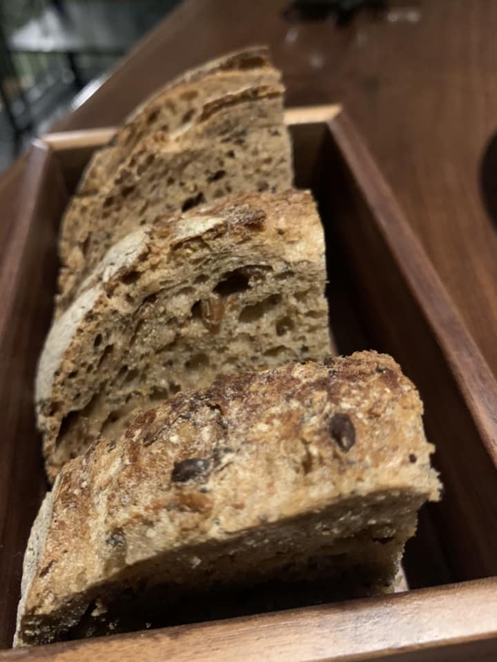 La carta dei vini è abbastanza ampia e ben strutturata: dà molto spazio al naturale, ma contempla anche qualche etichetta più classica. Scelgo il percorso di degustazione al calice e il sommelier mi fa spaziare tra Loira e Toscana con un blend di Ancellotta e Sangiovese, la penisola di Mornington in Australia per un Pinot Nero sorprendente, il Roero e la Murgia ai piedi di Castel del Monte, seguendo il fil della rouge della freschezza e della purezza di frutto.