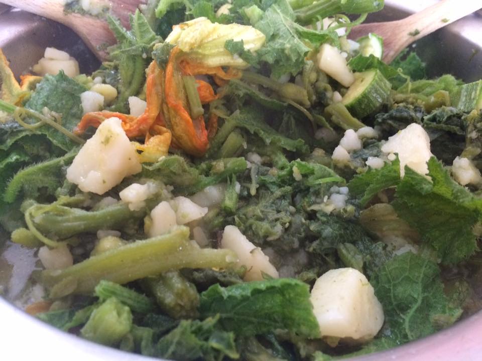 - 800 gr di tenerumi (completi di piccoli zucchini e fiori di zucca)