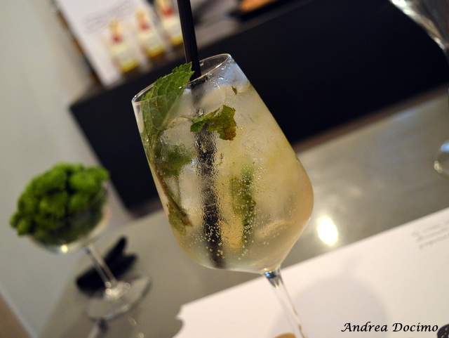 La cena è principiata con un gradevole Hugo, cocktail che prevedeva: sciroppo ai fiori di sambuco, prosecco, menta, lime e soda. Molto rinfrescante, ben equilibrato e per niente stucchevole.