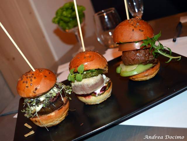 Giungiamo dunque alle creazioni attorno cui è ruotata la cena. Per la scuola pitagorica tre era il numero perfetto e tre sono stati i panini ideati da Sposito da 12 Morsi. Altissimo il livello, sia sotto il profilo della presentazione, che sotto quello della elaborazione materica.
