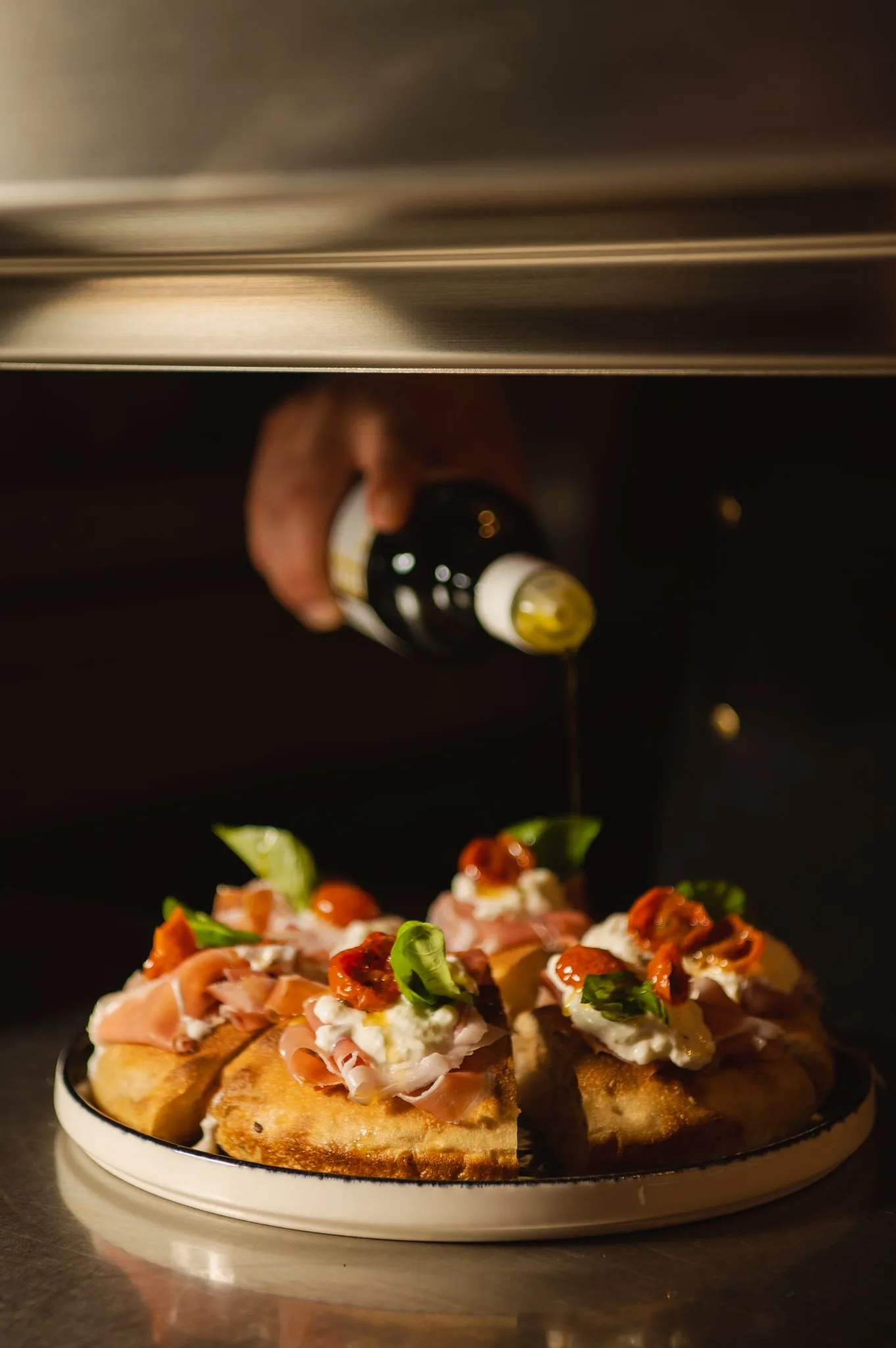Le pizze, tutte attentamente curate, portano con sé una forte impronta territoriale. Si inizia con Polichetti che ha proposto una pizza di scarole con un disco dal doppio crunch. Nastieat si è divertito con il padellino in versione pugliese con prosciutto crudo di Parma, stracciatella pugliese, pomodorini semidry, basilico e olio extravergine d’oliva della Puglia. La Carmela ha stupito tutti con una montanara dai profumi cilento-lucani con la provola di Sassano, e infine Madison con la Federico II con pesto di finocchietto selvatico, songino, stracciatella di bufala, acciughe del Cantabrico e petali di pomodoro fresco.