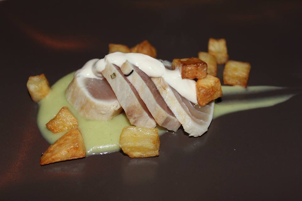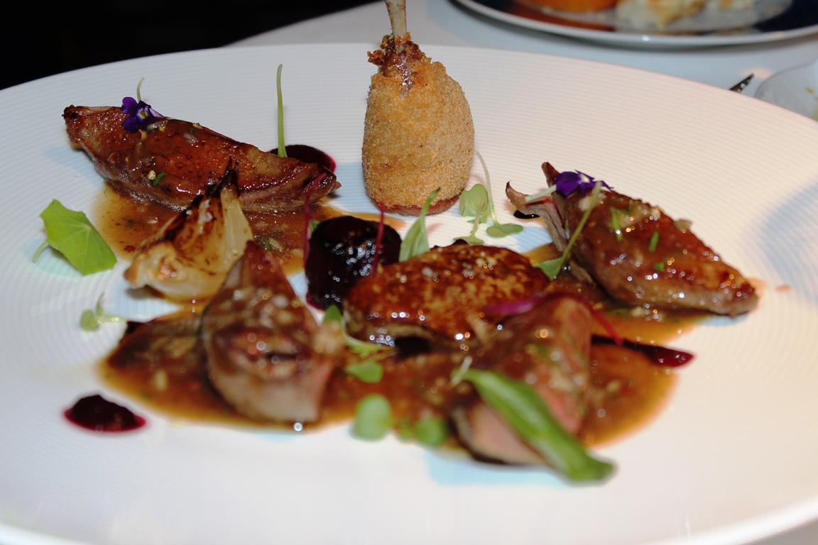 - Piccione in due cotture, scaloppa di foie-gras e jus di rapa rossa